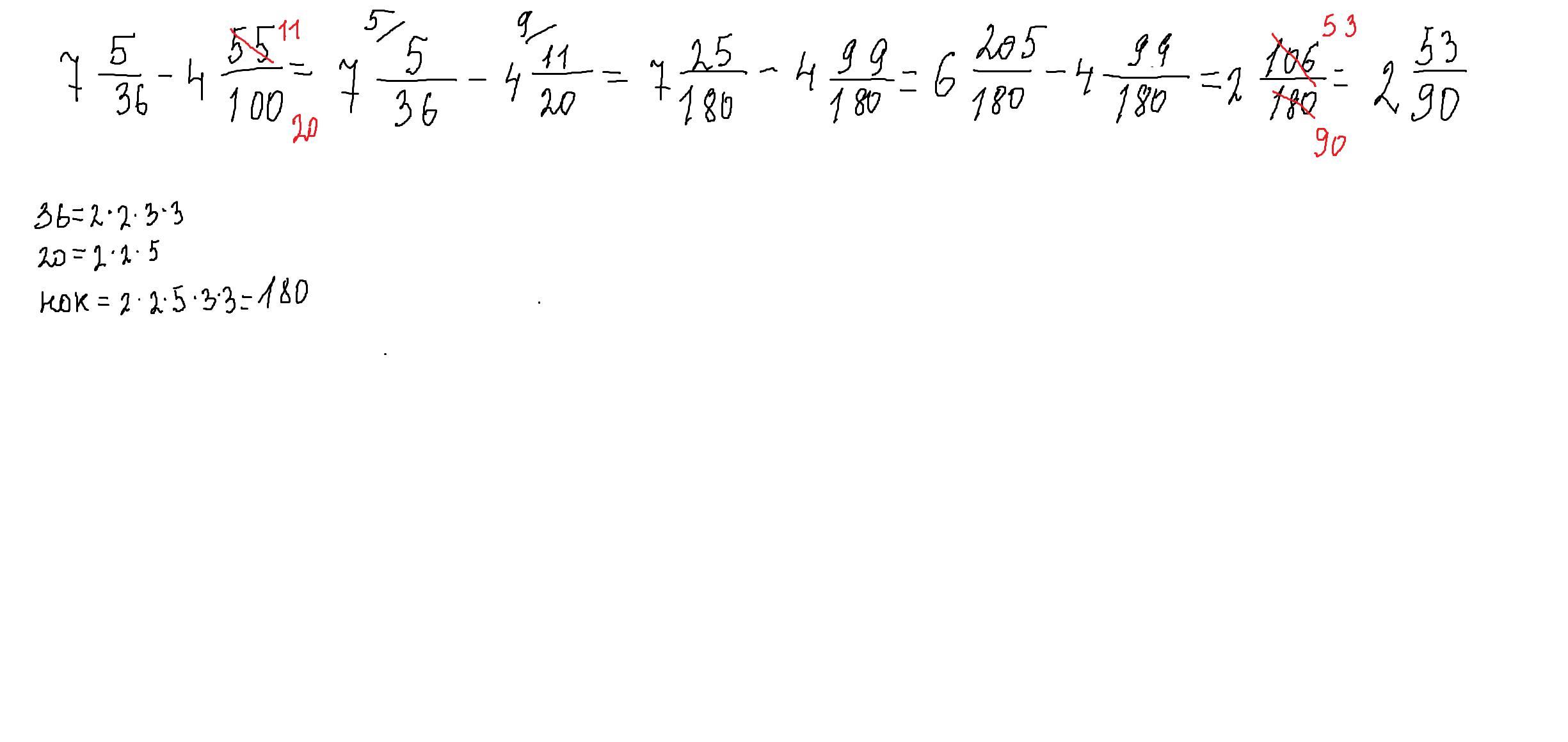 Ответ: 7 5/36-4,55 = 7 5/36-4 55/100= 7 5/36-4 11/20=257/36-91/20=
