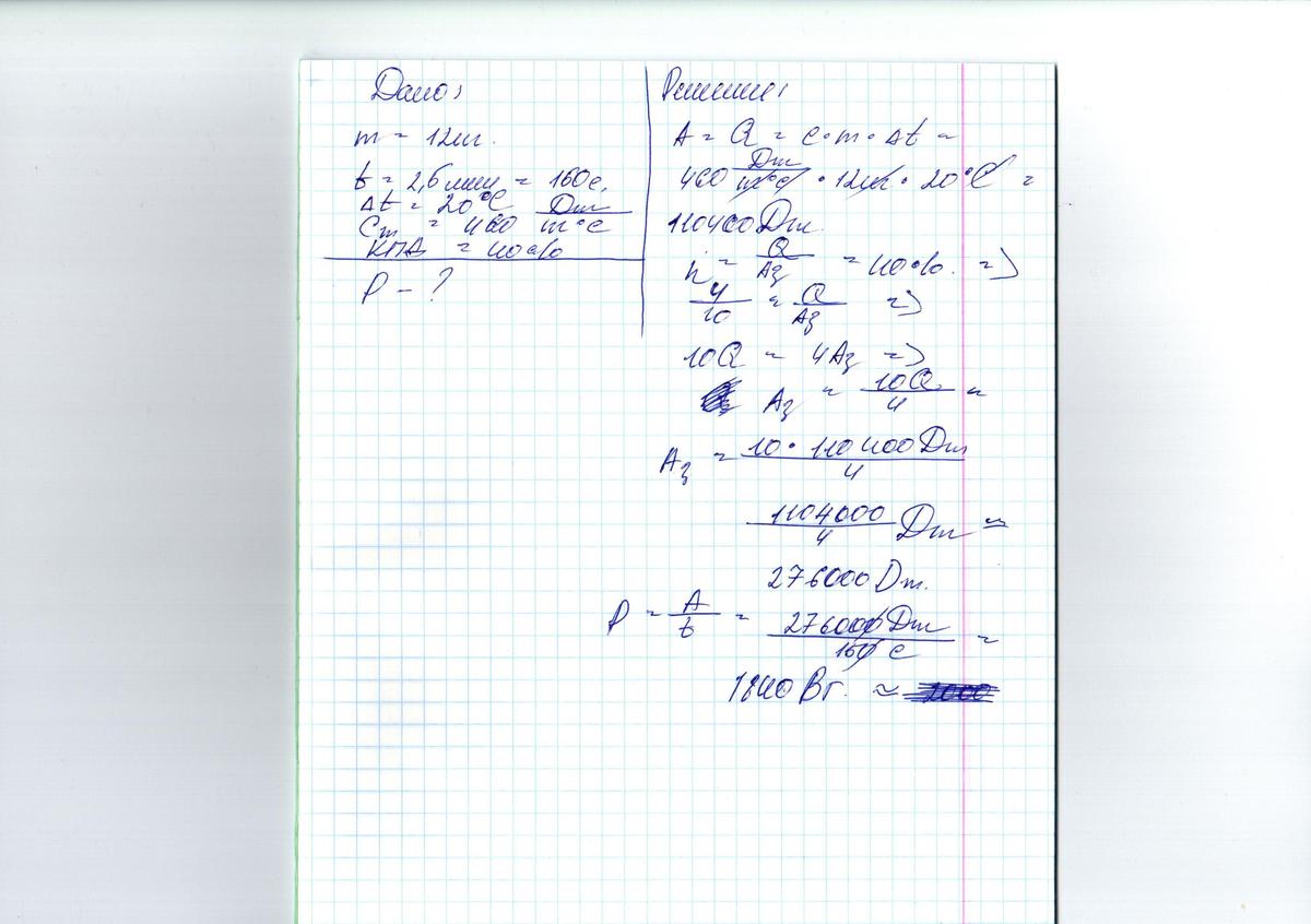 P=W/t = m*C*T*100/(кпд *t) = 12*460*20*100/(40 *150) = 1840 Вт