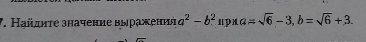 a^2 -b^2=(a-b)(a+b)=(√6 -3-√6 -3)(√6 -3+√6 +3)=-6•2√6=-12√6
