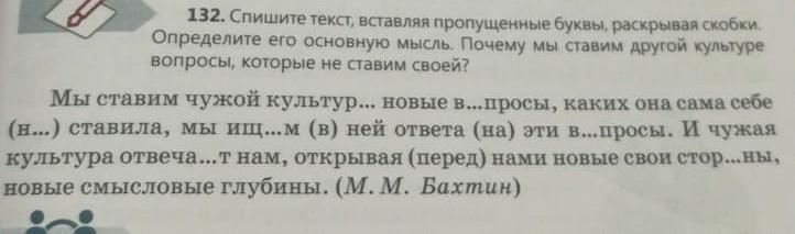 Спишите текст, вставляя пропущенные буквы, раскрывая скобки. Определите его основную мысль. Почему мы ставим другой культуре вопросы, которые не ставим своей?
