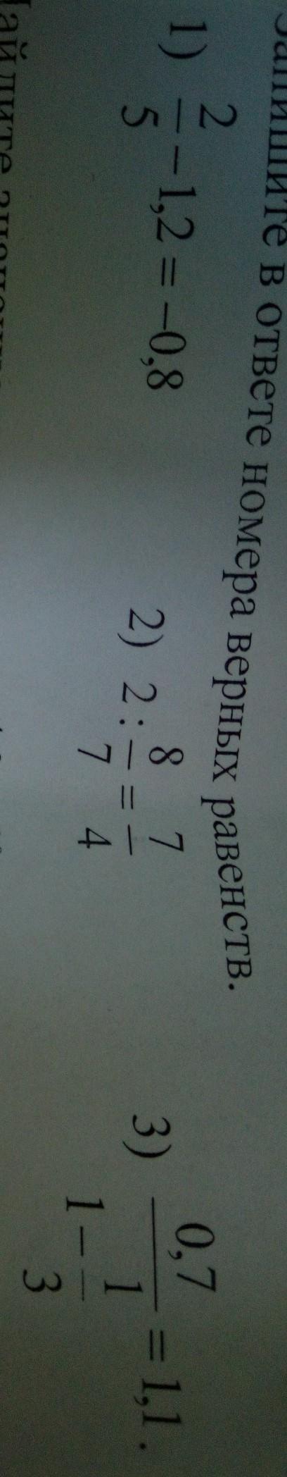 1)2/5 - 1 1/5 = -1 1/5 2)2: 8/7 = 7/4 3) 0,7/1-1/3 = 0,7/2/3 = 1 1/20