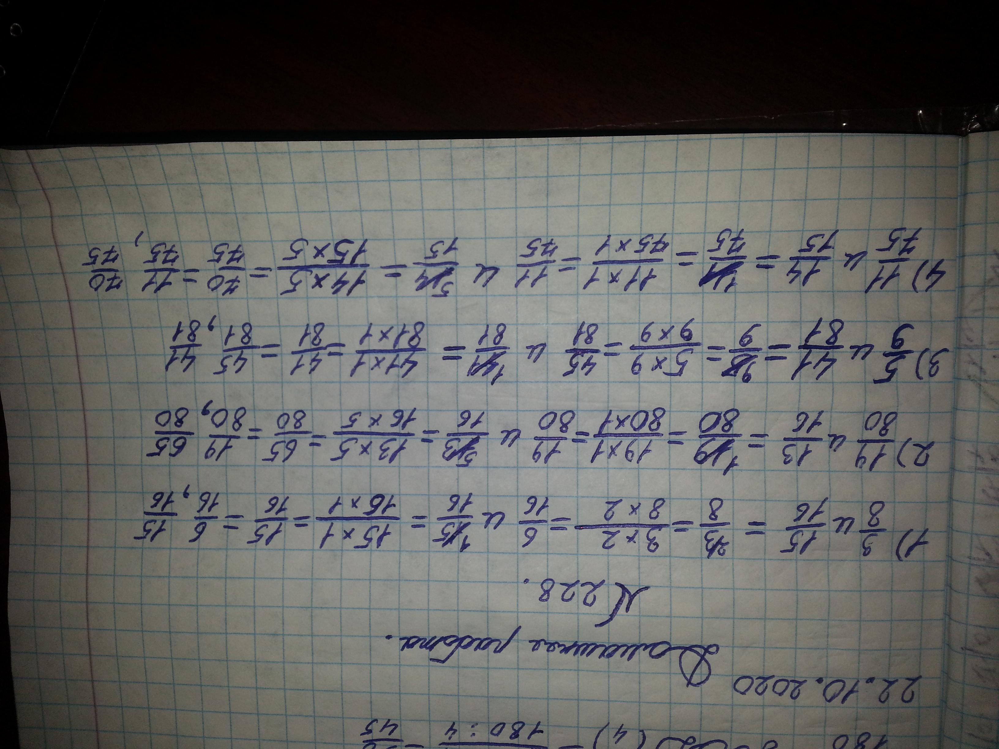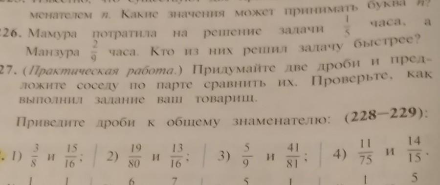1) 6/16 и 15.16 ; 2) 19/80 и 65/80; 3) 45/81 и 41/81 ; 4) 11/75 и 70/75