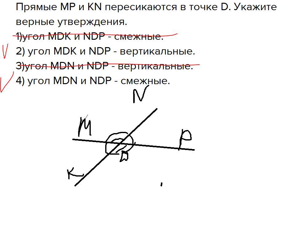Объяснение:Прямые MP и KN пересикаются в точке D. Укажите верные утверждения.