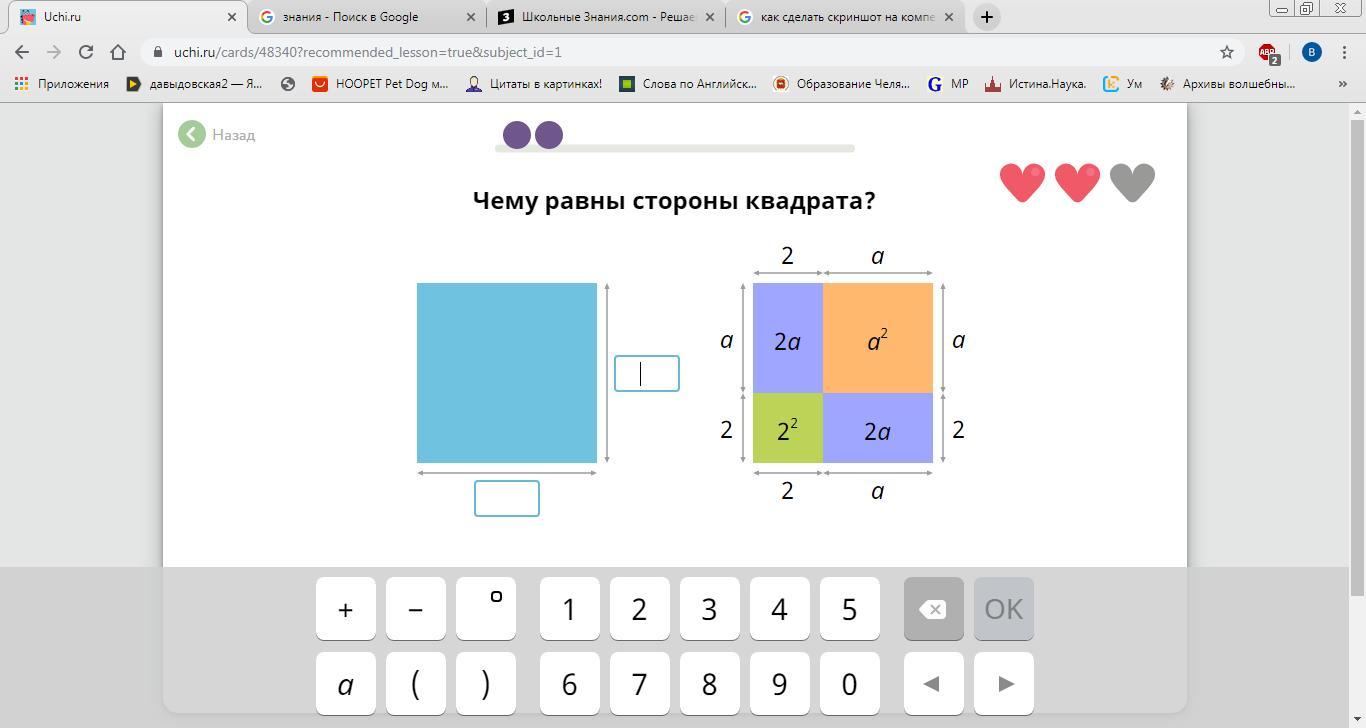 Сторона квадрата равна 2+а или а+2