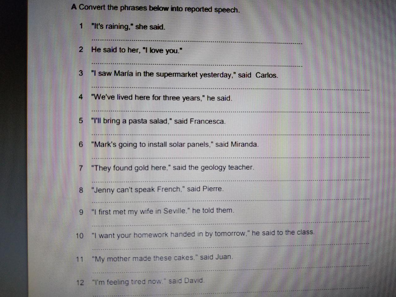 3. Carlos said that he had seen Maria in the supermarket the day before.