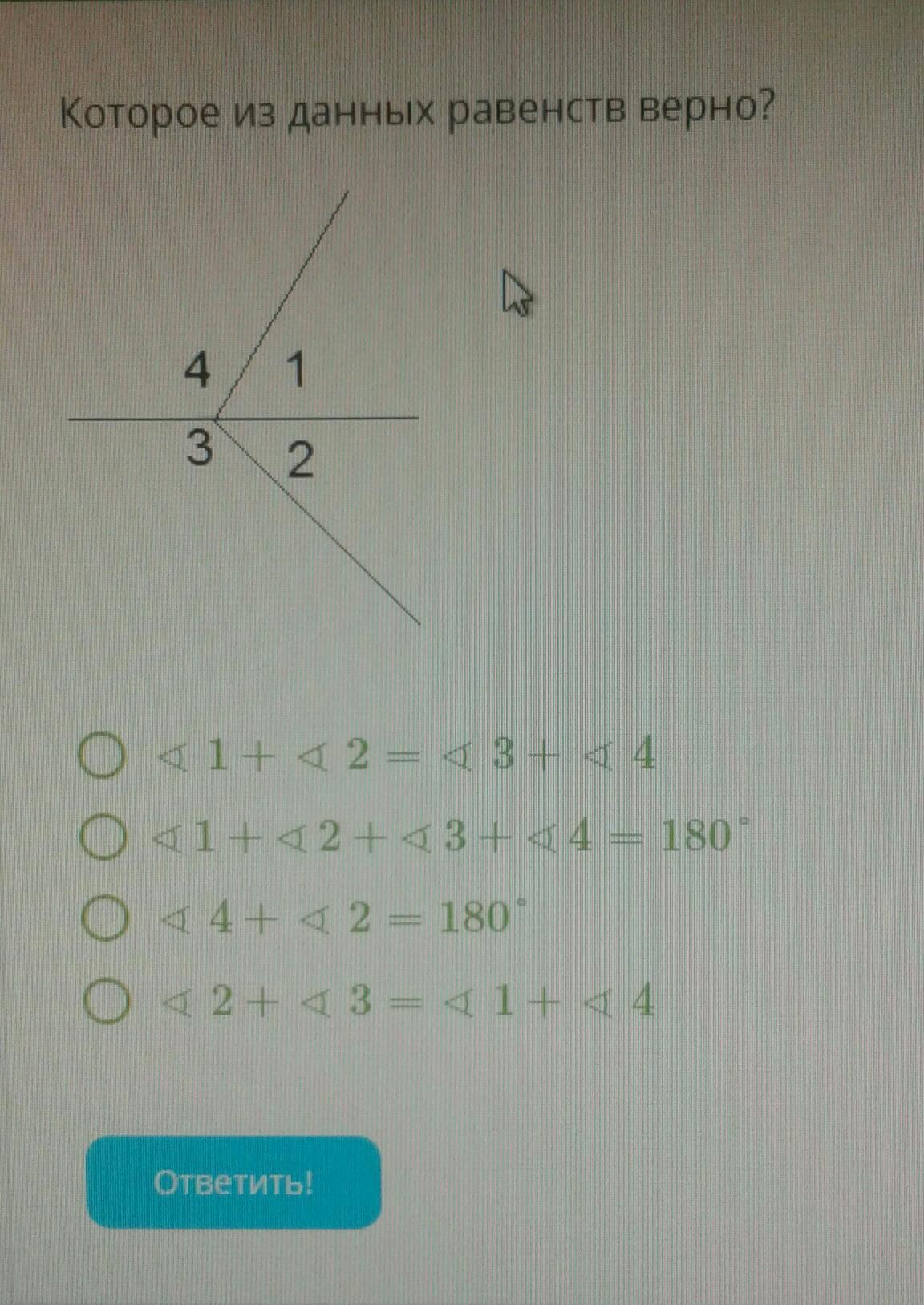 так как угол 2 и 3 угол 1 и 4 смежные и они в сумме составляют 180 градусов . а все возьмем за 360 в виде окружности то тогда читд