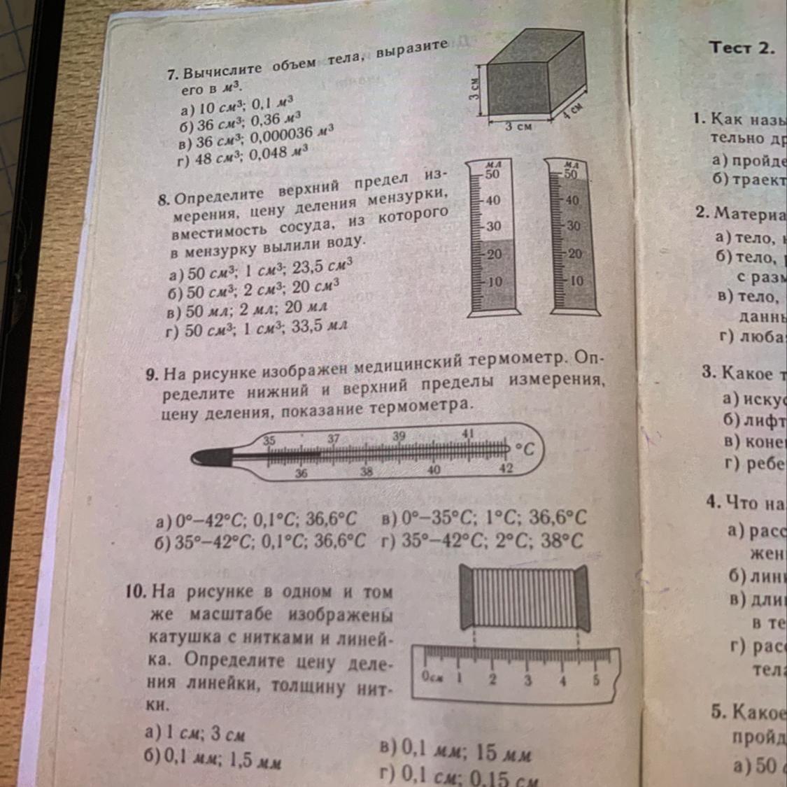 мерения, цену деления мензурки,