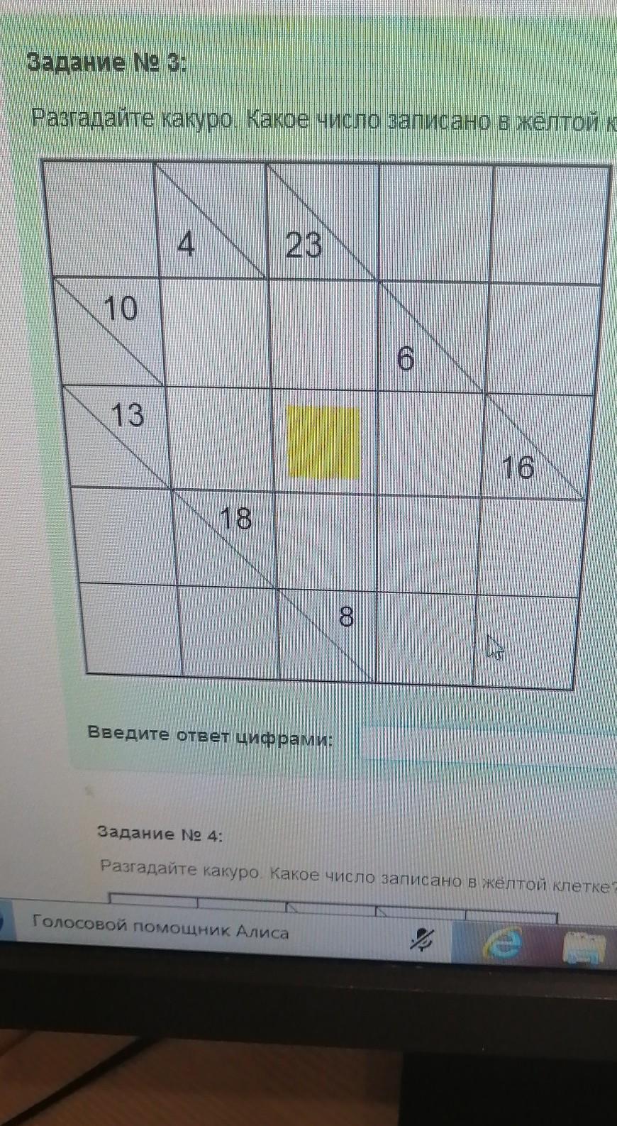 Разгадайте какуро. Какое число записано в жёлтой клетке?