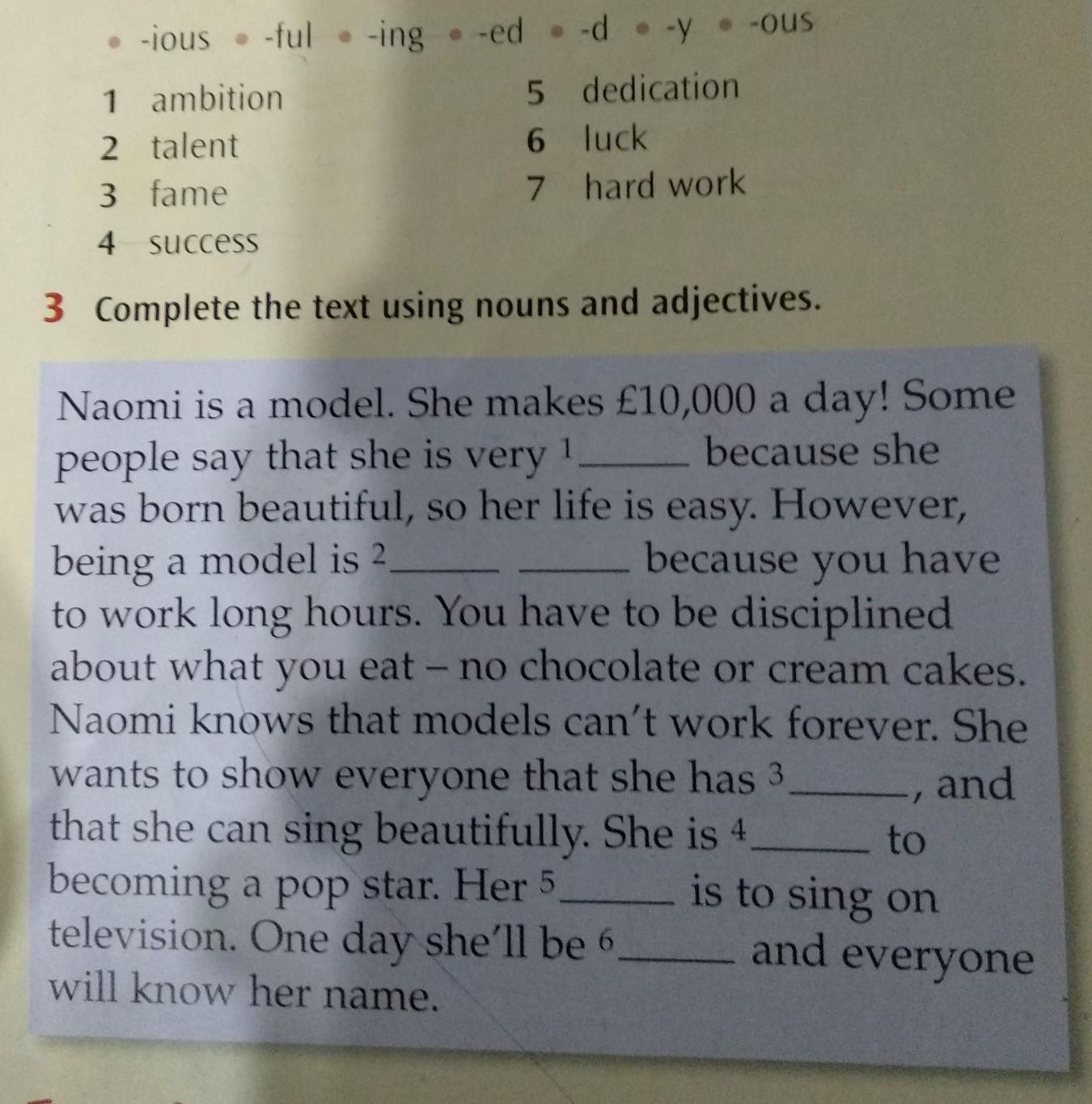 Ответ:1lucky , 2hard working, 3talented, 4ambitions, 5 successful,6fameous