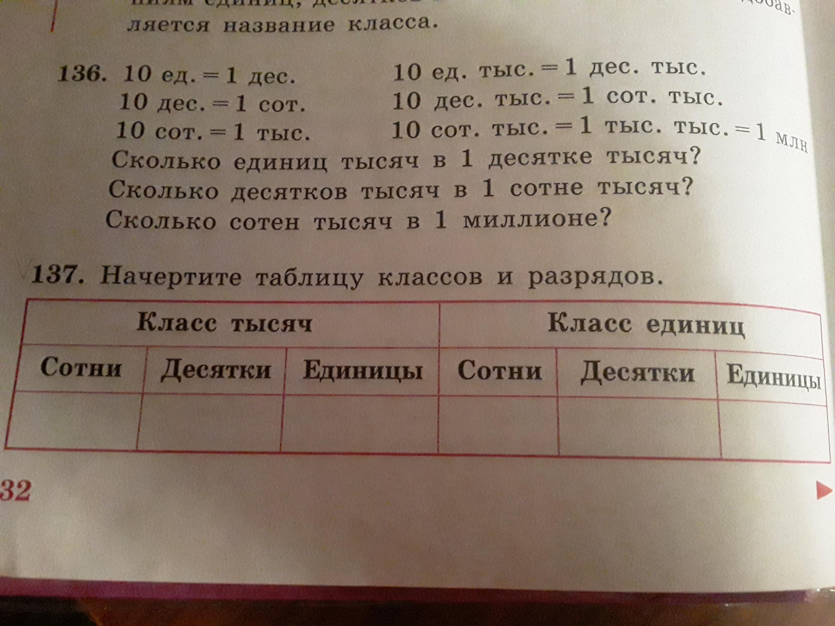 Подскажите и помогите пожалуйста !номер 137. Впишите в таблицу классов и разрядов: 1 ед. тысяч, 1 дес. тысяч , 1 сот. тысяч. . Вместо отсутствующих сотен десятков и единиц впишите нули .