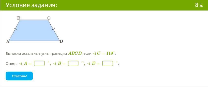 Трапеция равнобедренная, значит <A = <D = 61⁰