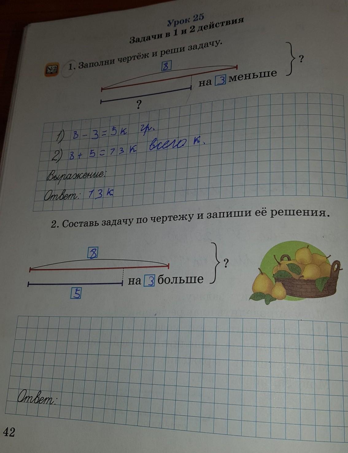 К примеру задача: У Маши 8 груш, а у Ксюши 5. На сколько груш больше у Маши чем у Ксюши? Сколько всего у них груш?