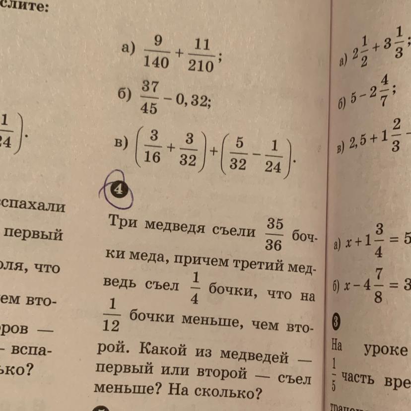 Пошагово объяснение: 1/4=9/36 это съел третий