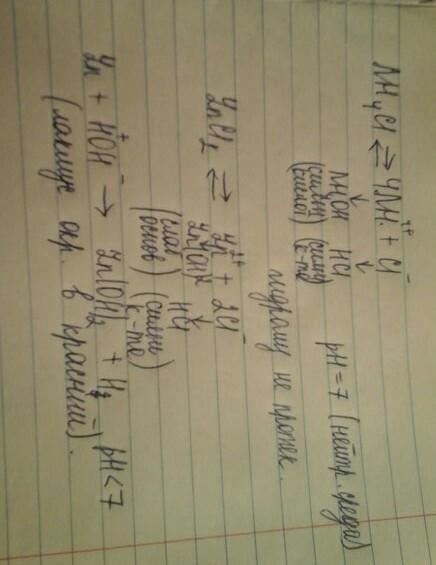 напишите уравнения реакции гидролиза нижеперчисленных веществ : NH4Cl, ZnCl2