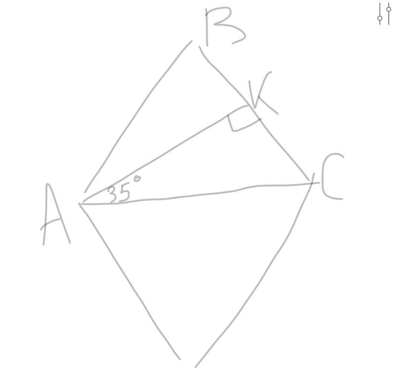 Т.к. AB=BC(Потому что у ромба стороны одинаковы) то ΔАВС равнобедренный ⇒ AK является биссектрисой ⇒ ∠АВС=35°*2=70°