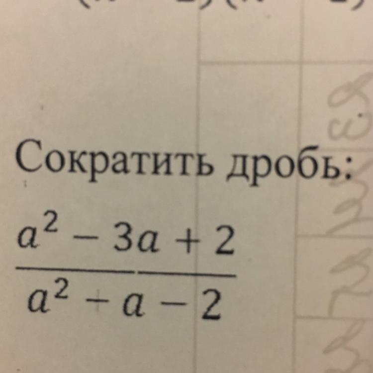 (a² - 3a + 2) / (a² - a - 2) = (a - 1)(a - 2) / (a + 1)(a - 2) = сокращаем подобные (a-2) = (a - 1)/(a + 1)