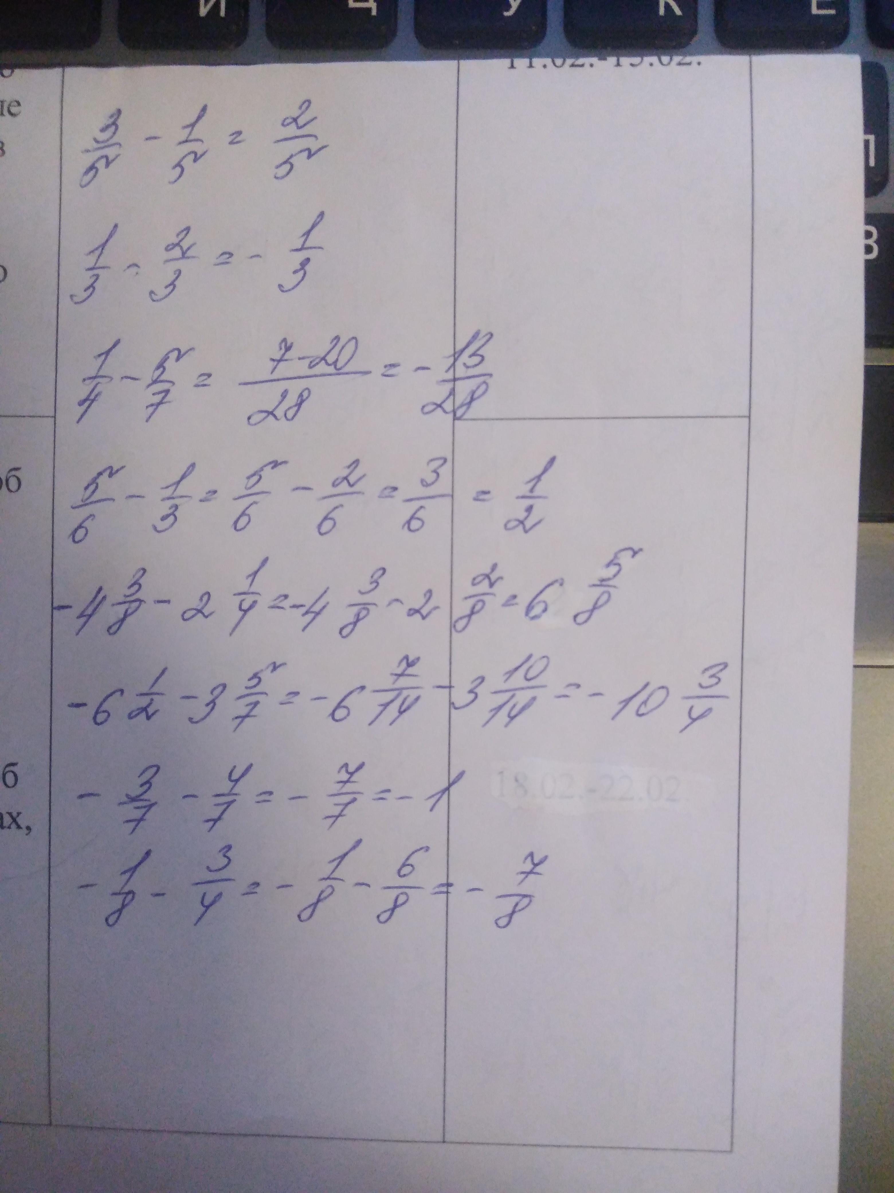 5) -6 5/8 6) -10 3/14 7)-1 8) - 7/8