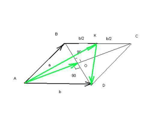 Ответ:Выразите векторы AO, AK,KD через векторы a=AB и b=AD