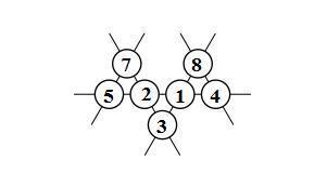 8)Серёжа расставил в кружочках числа от 1 до 8 так, что каждое из чисел, кроме одного, использовано ровно по одному разу. Оказалось, что суммы чисел на каждой из пяти линий равны. Какое число Серёжа не использовал?