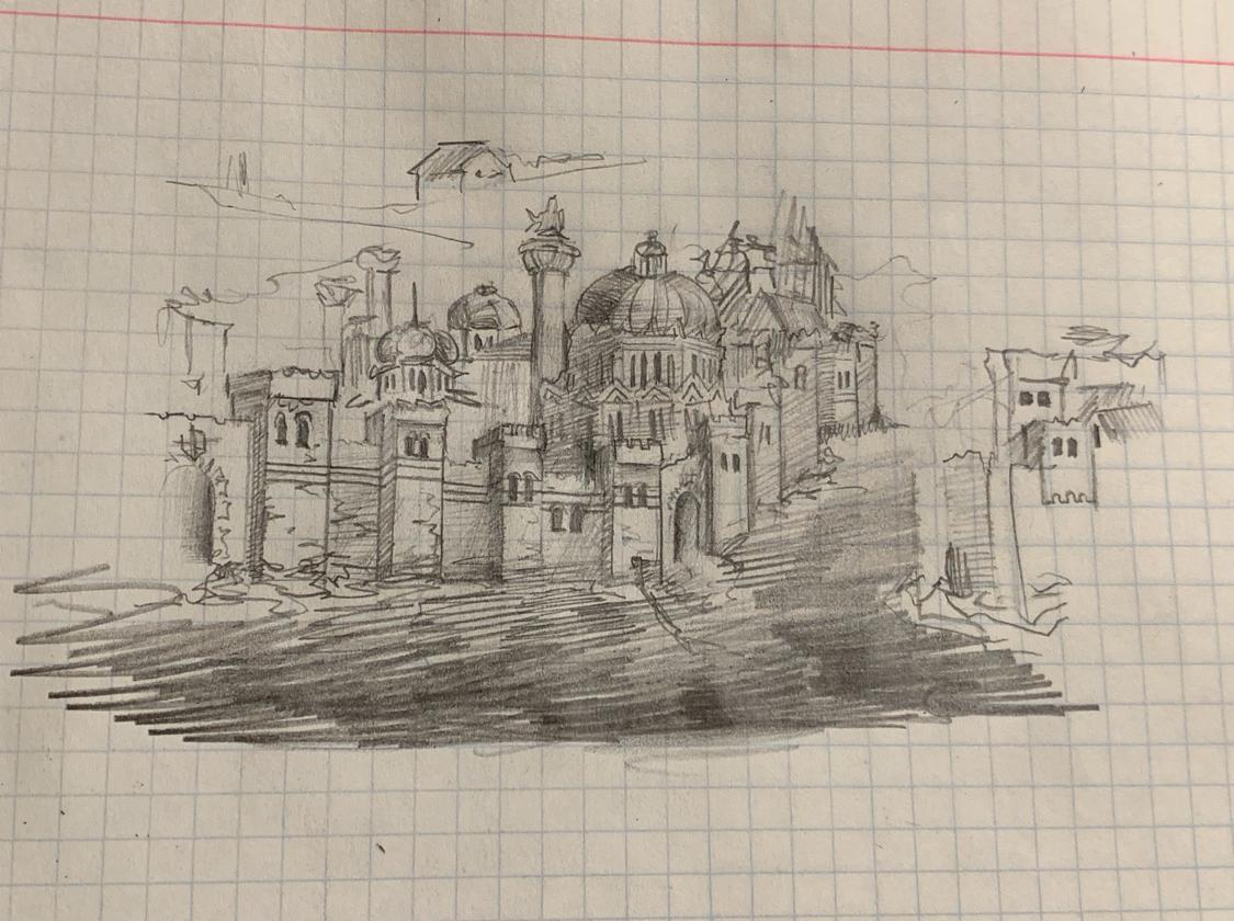 Внизу море. Набросок делала с картинки в инете, там конечно много Стамбула выдаётся, но вроде это Византийская империя