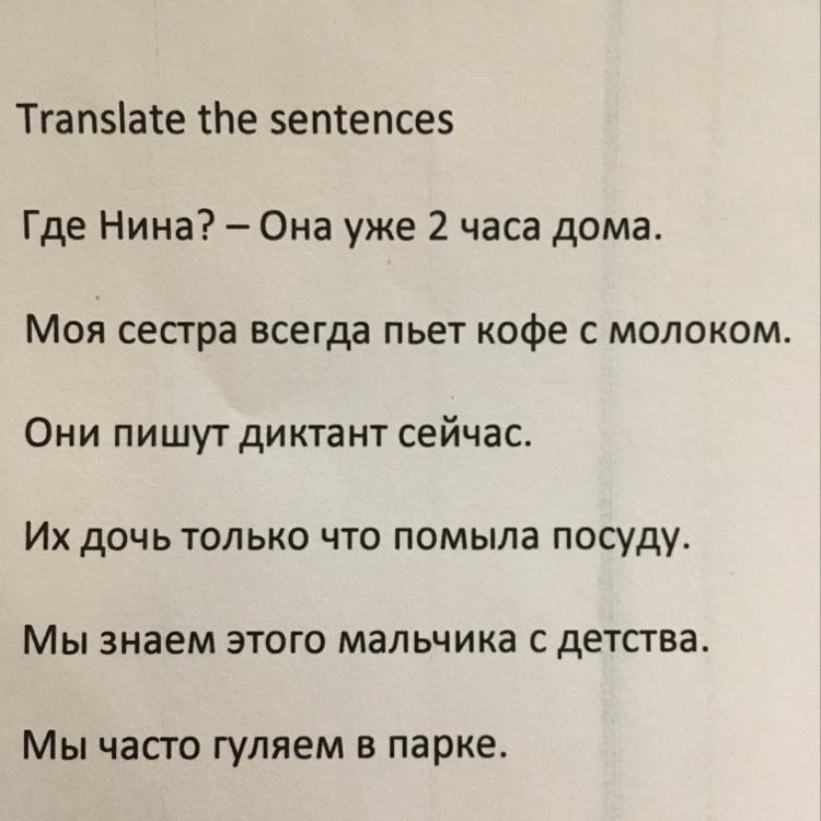 Where is Nina? - She is at home for 2 hours