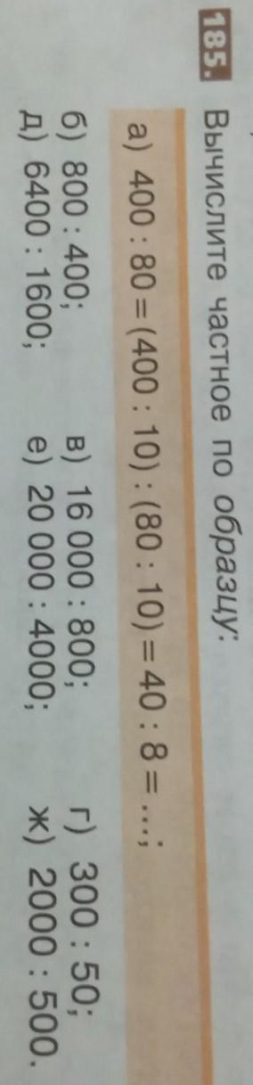 д) 6400:1600=(6400:100):(1600:100)=64:16=4
