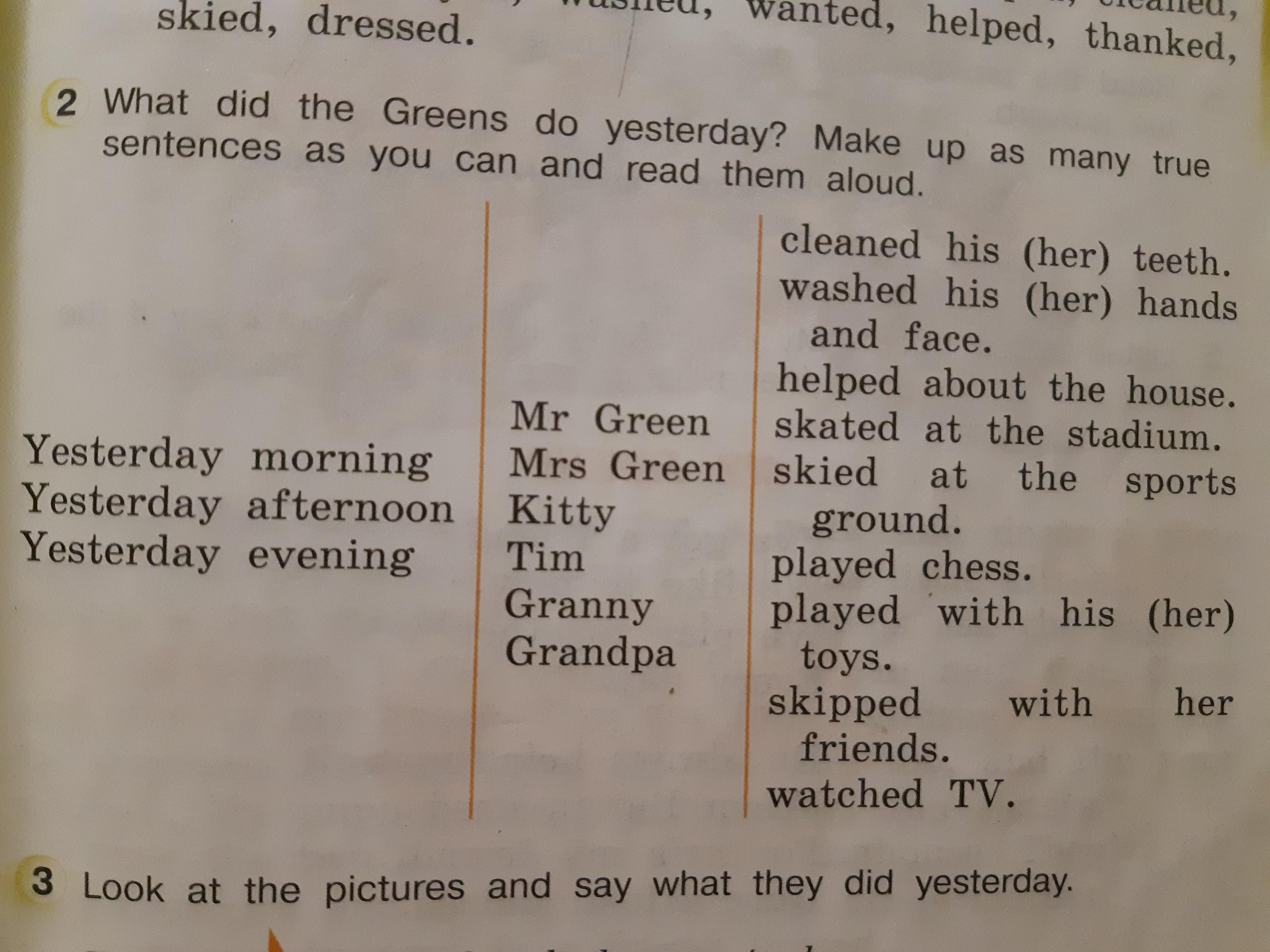 what did the greens do yesterday make up as many true sentences as you can and read them aloud. yesterday morning. Что здесь нужно сделать ?