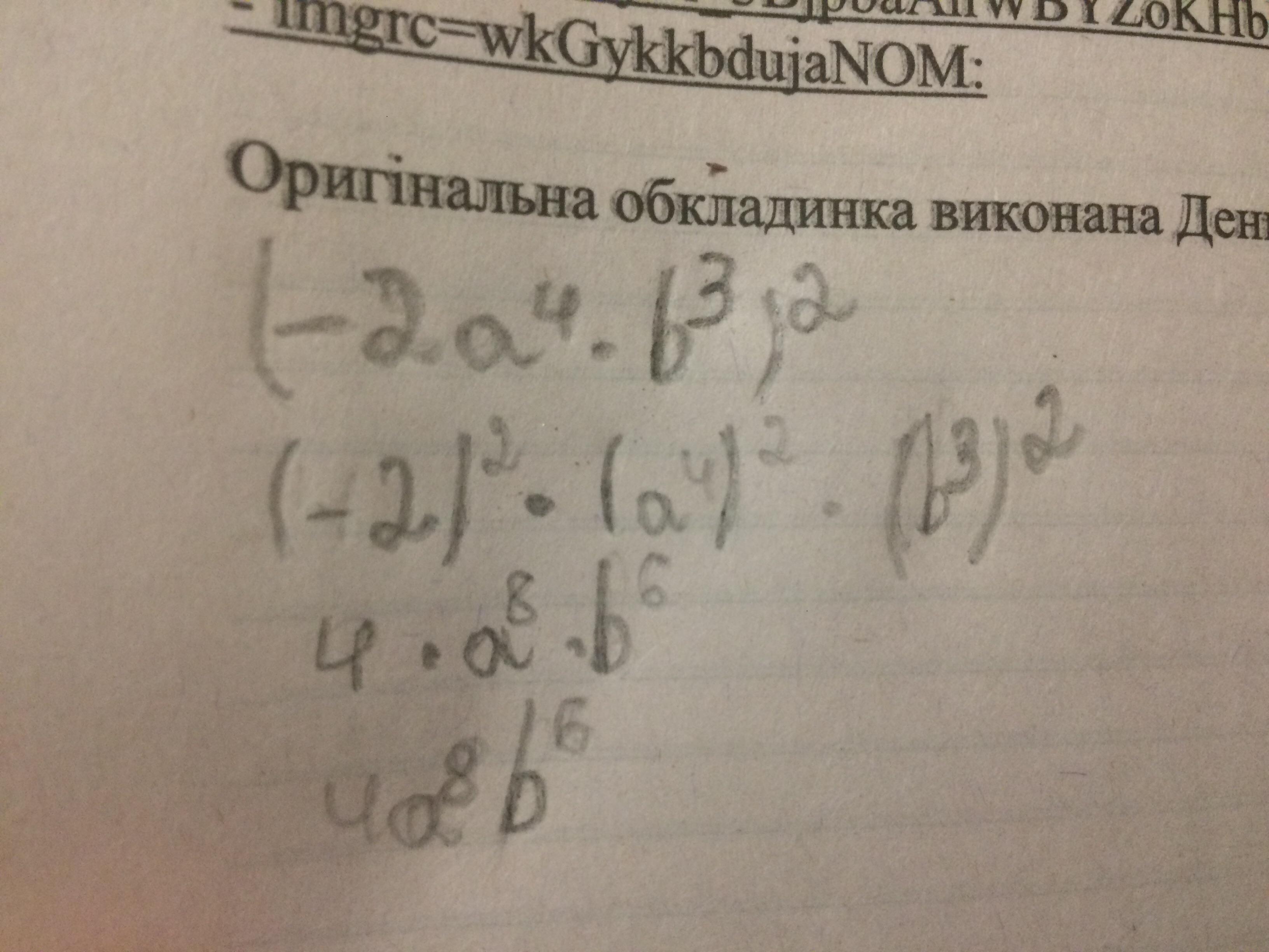 Поднести одночлены к квадрату или кубу:
