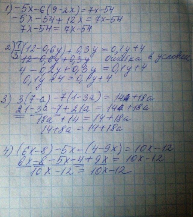 1) - 5х – 6(9 – 2x) = 7х – 54;