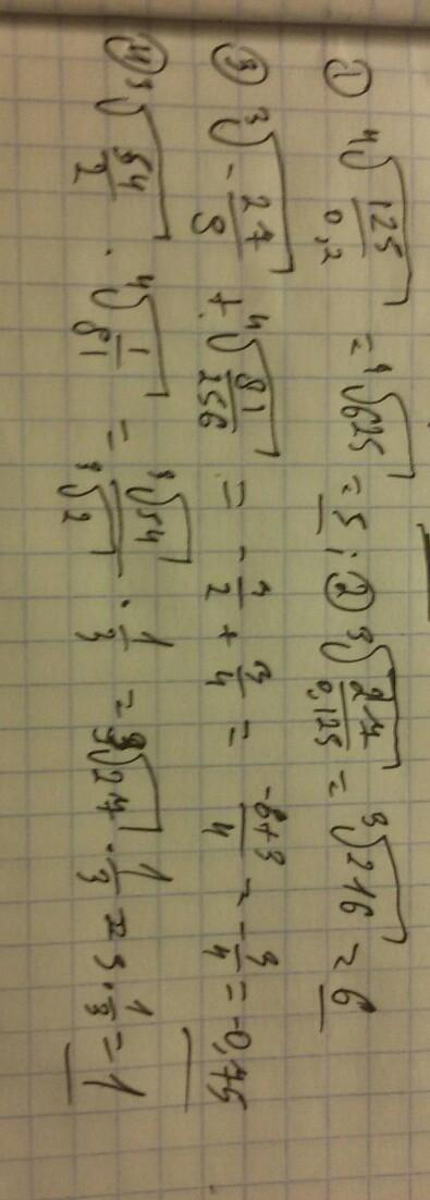 a) ⁴√(125/0,2)=⁴√(125/(1/5))=⁴√625=⁴√5⁴=5.