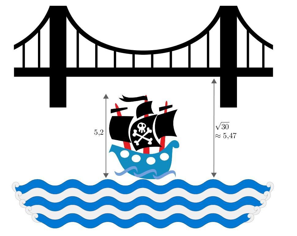 высота моста над рекой выражена числом корень из 30м.Сможет ли пройти под этим мостом судно, высота которого над уровнем воды 5,2м?