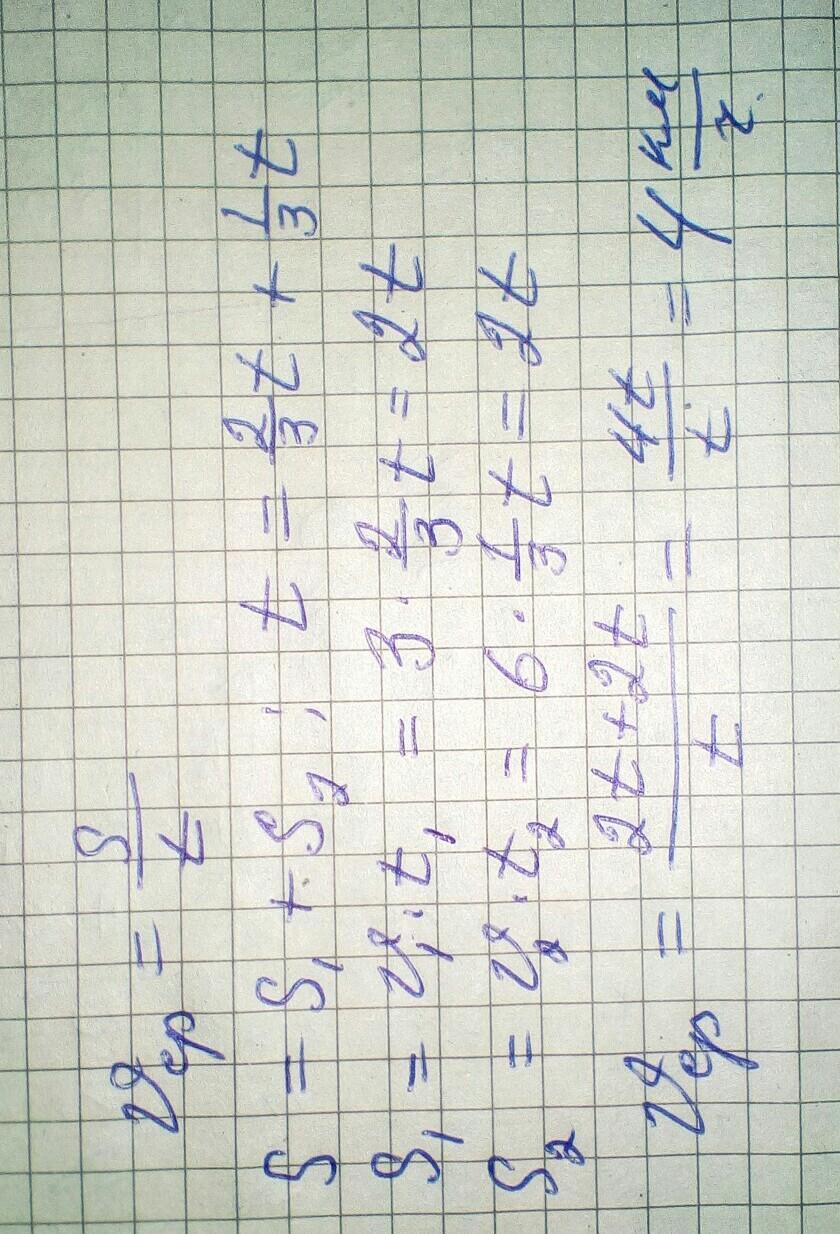 в течение 2/3 части времени движения турист двигался со скоростью 3км/ч. в оставшееся время он двигался со скоростью 6 км/ч. определите среднюю скорость туриста км/ч?