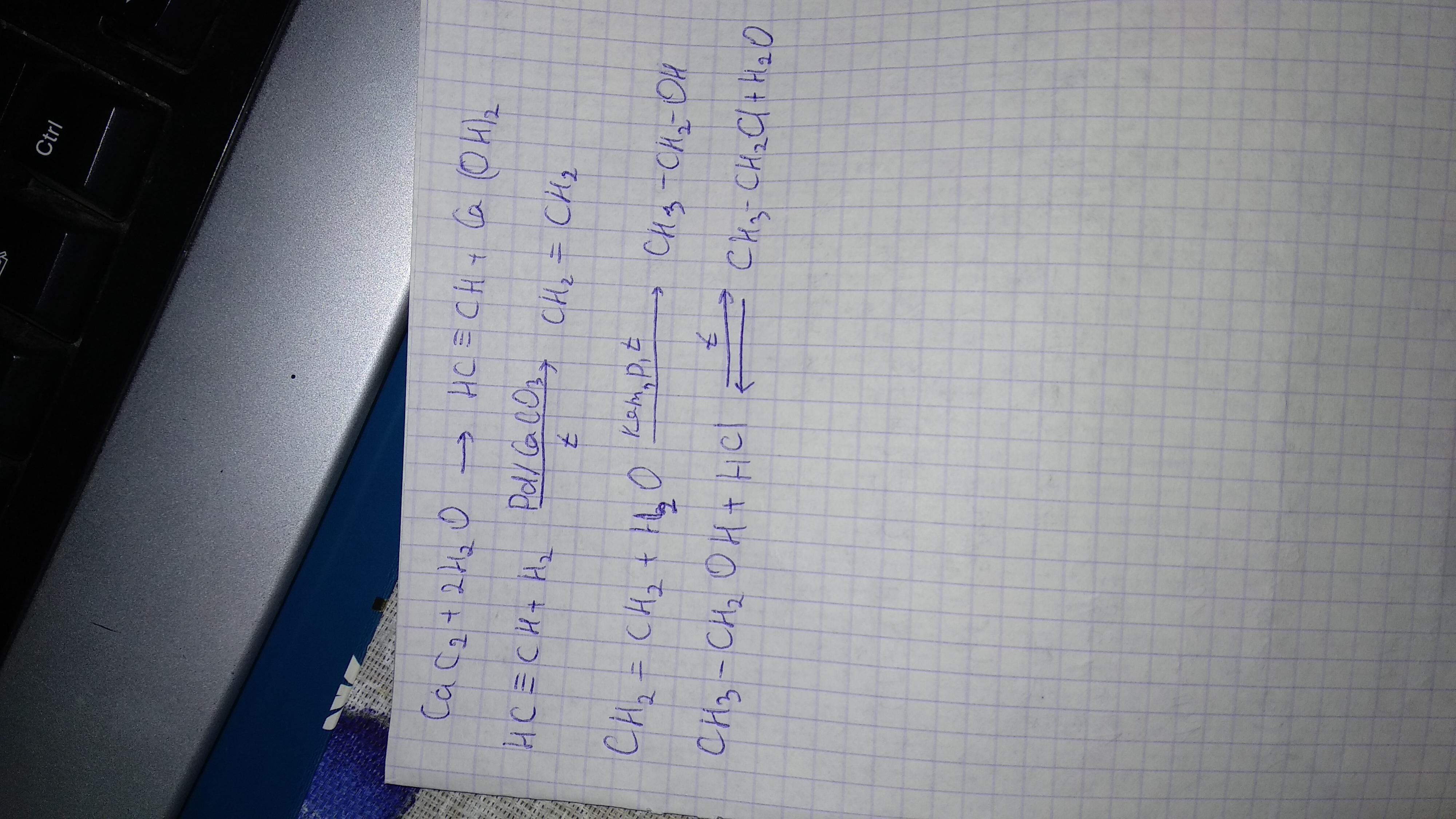 Все просто. В первой из карбида кальция и воды получаем ацетилен и гидроксид кальция