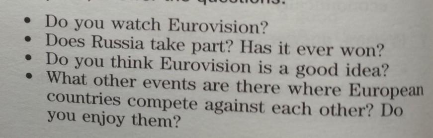 4. Какие еще есть события, где европейские страны конкурируют друг с другом? Вам они нравятся?