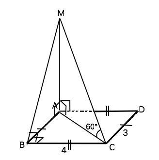 abcd- прямоугольник ,ma- перпендикуляр к плоскости прямоугольника , mca = 60 градусов . dc =3 см , сb= 4 см, найдите площадь треугольника mbc