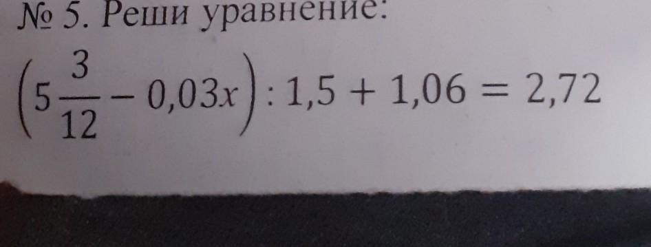 (5 1/4 - 0,03x) : 1,5 = 2,72 - 1,06