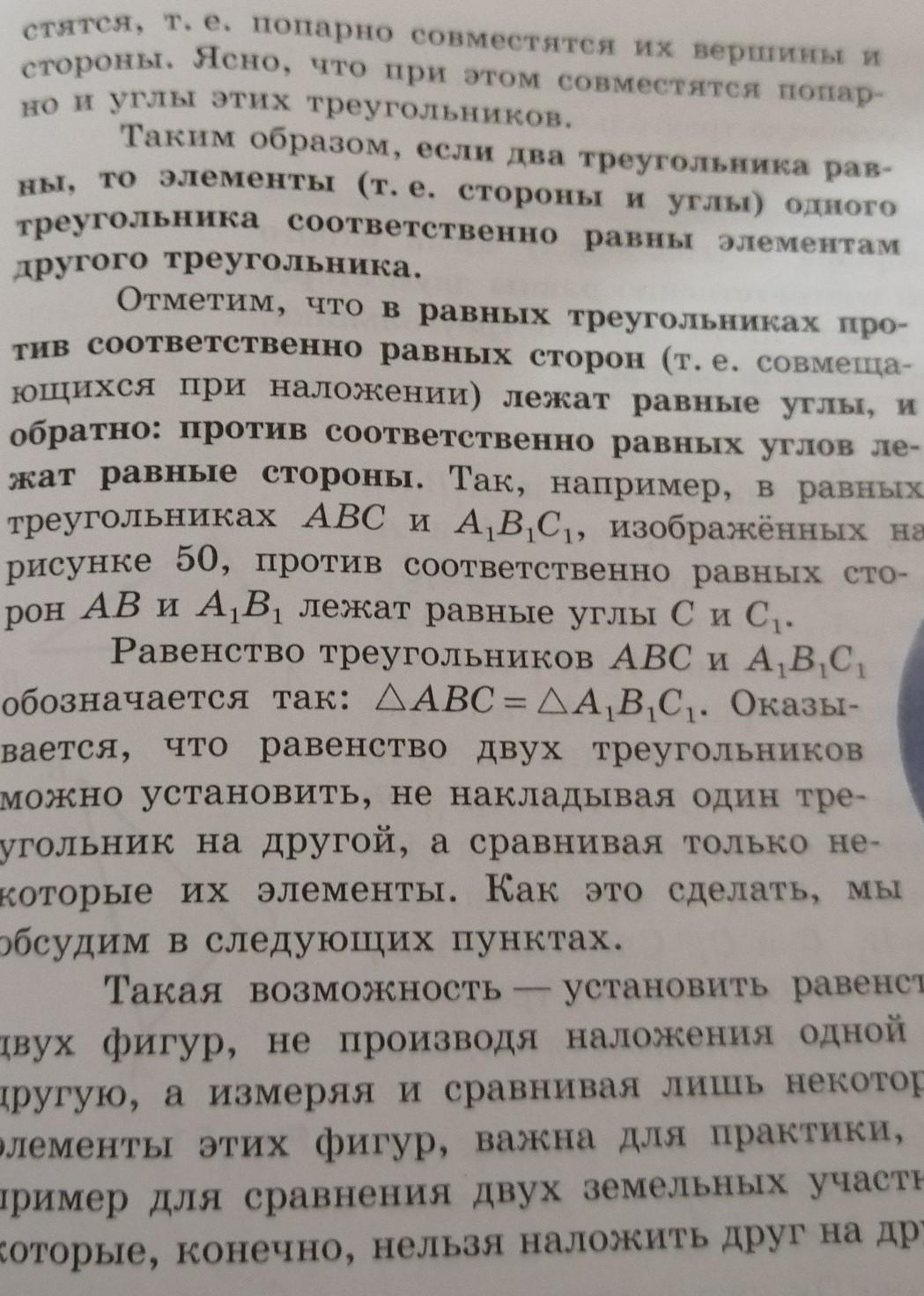 Равенство треугольников АВС и А1В1С1 обозначается так: (треугольник) АВС=(треугольник) А1В1С1