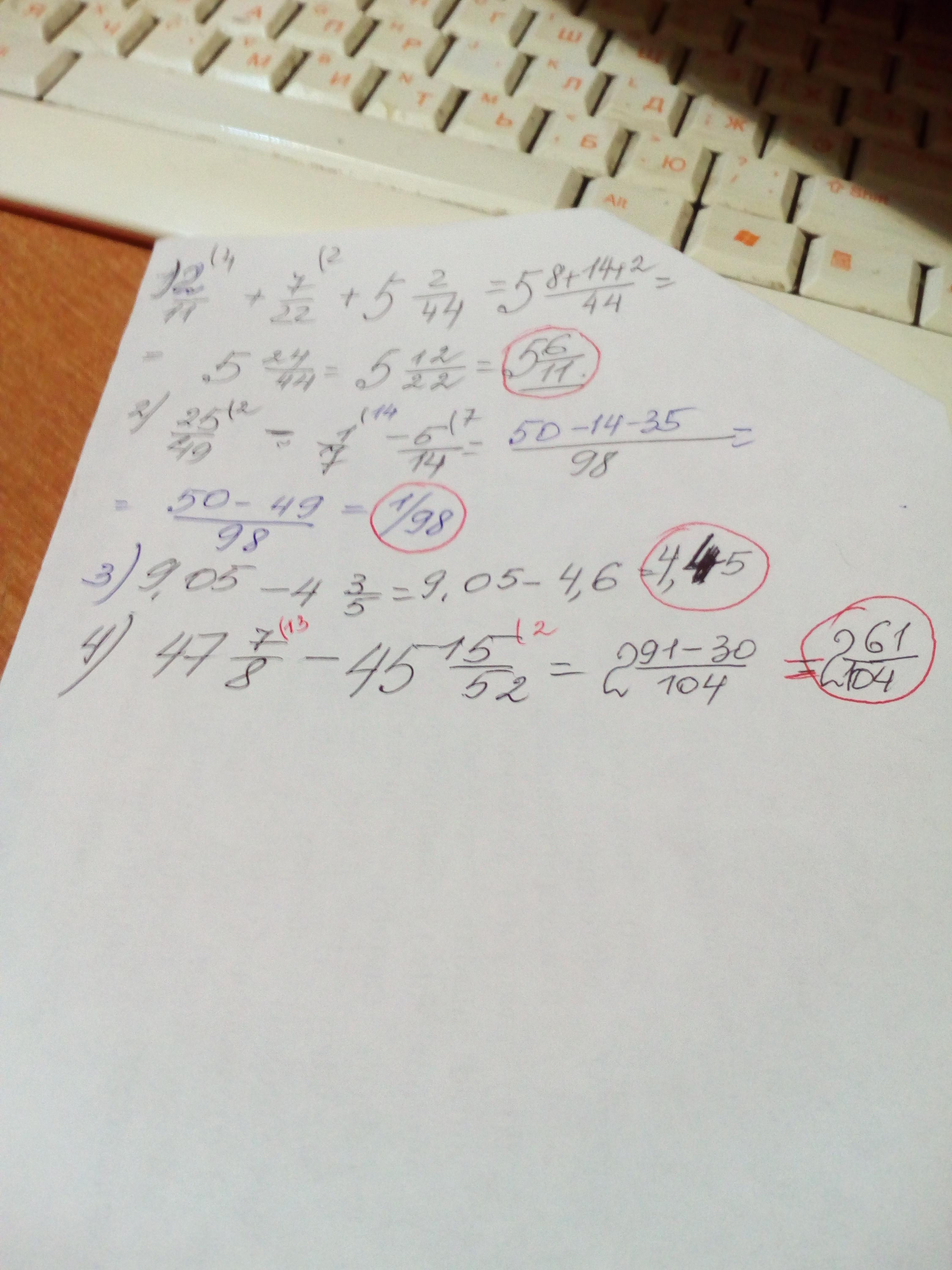 4)47 7/8-45 15/52=47 91\104-30.40\104=2 61\104