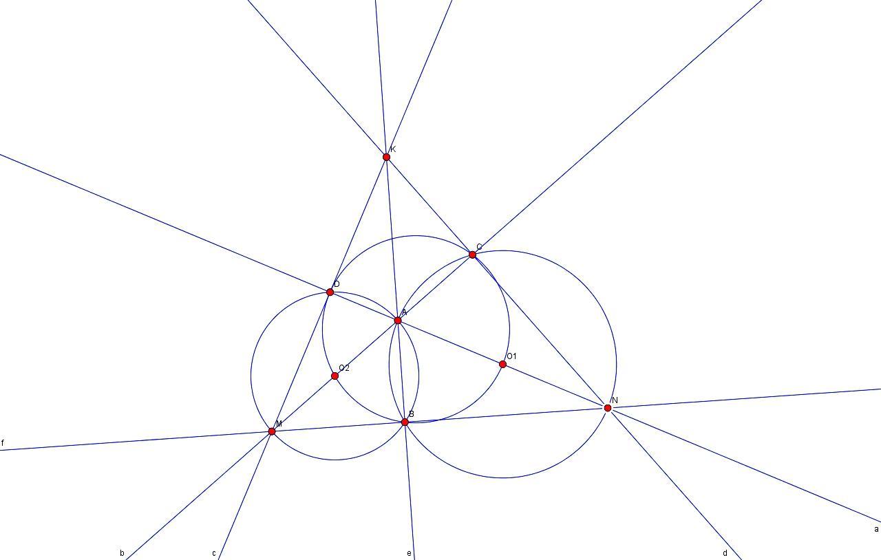 То есть три прямые KN, KM и AB пересекаются в одной точке K.