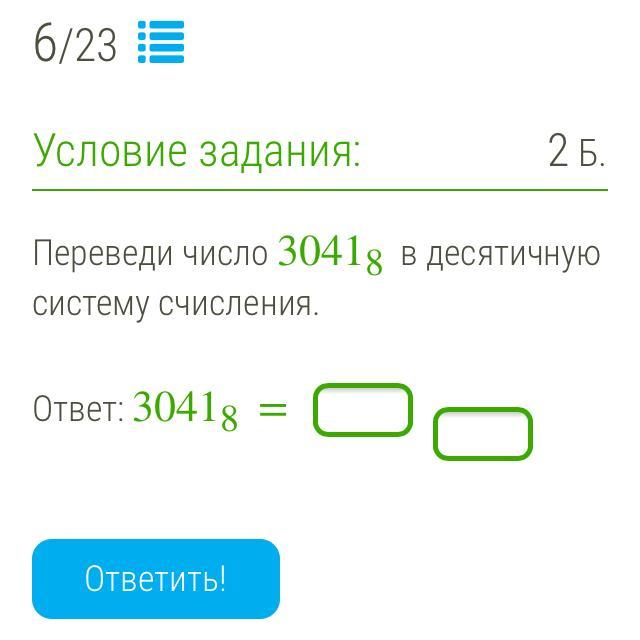 3041₈ = 1*8⁰ + 4*8¹ + 0*8² + 3*8³ = 1569₁₀