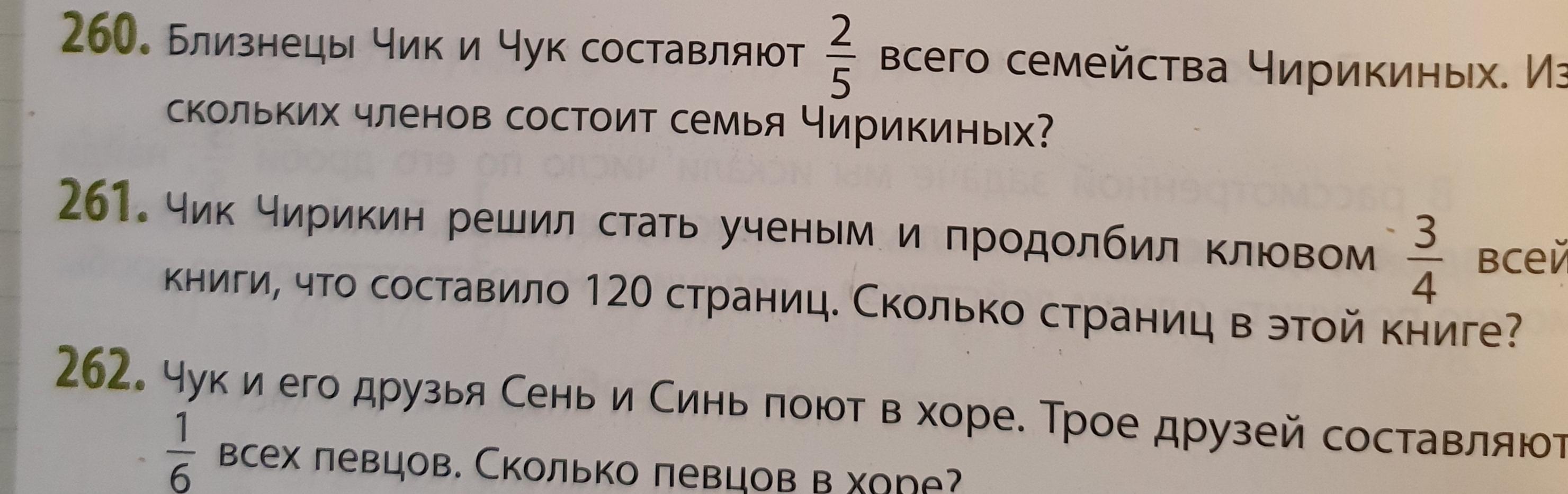 260) 2/5 = x/y где x = несколько членов семьи, а y = всё семейство. следовательно семья Чирикиных состоит из 5 членов