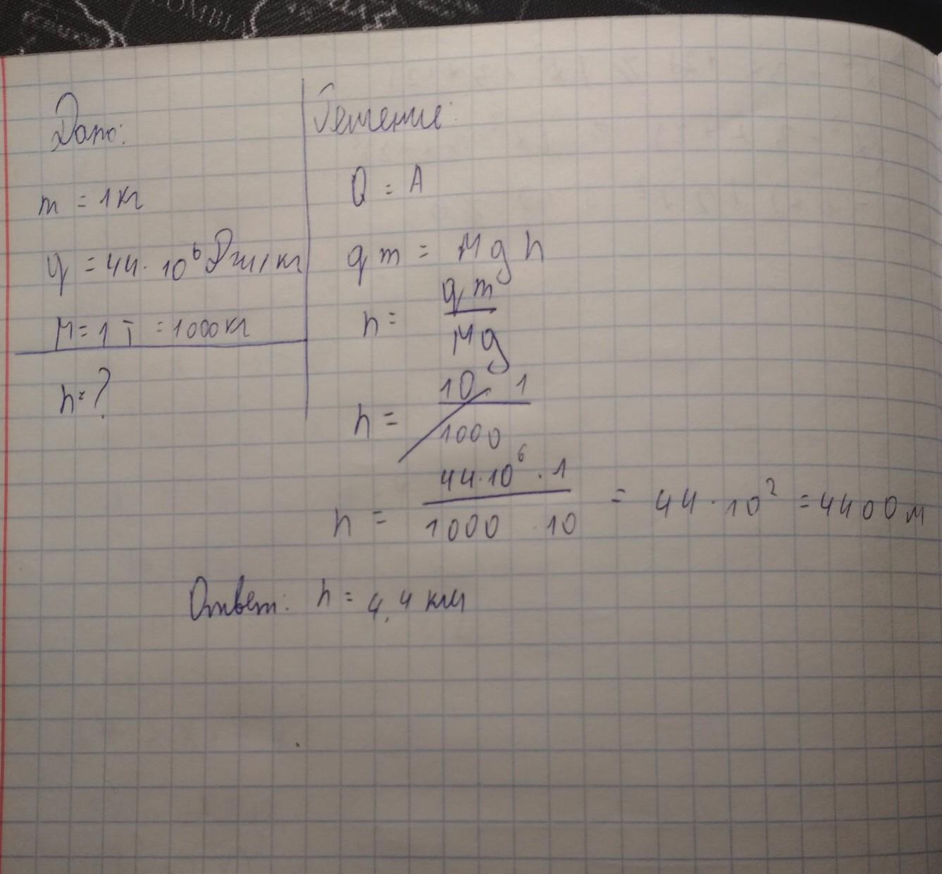 Какое количество теплоты выделяется при сгорании 1 кг бензина? На какую высоту можно было бы поднять легковой автомобиль массой m = 1 т, совершив работу, численно равную этому количеству теплоты?