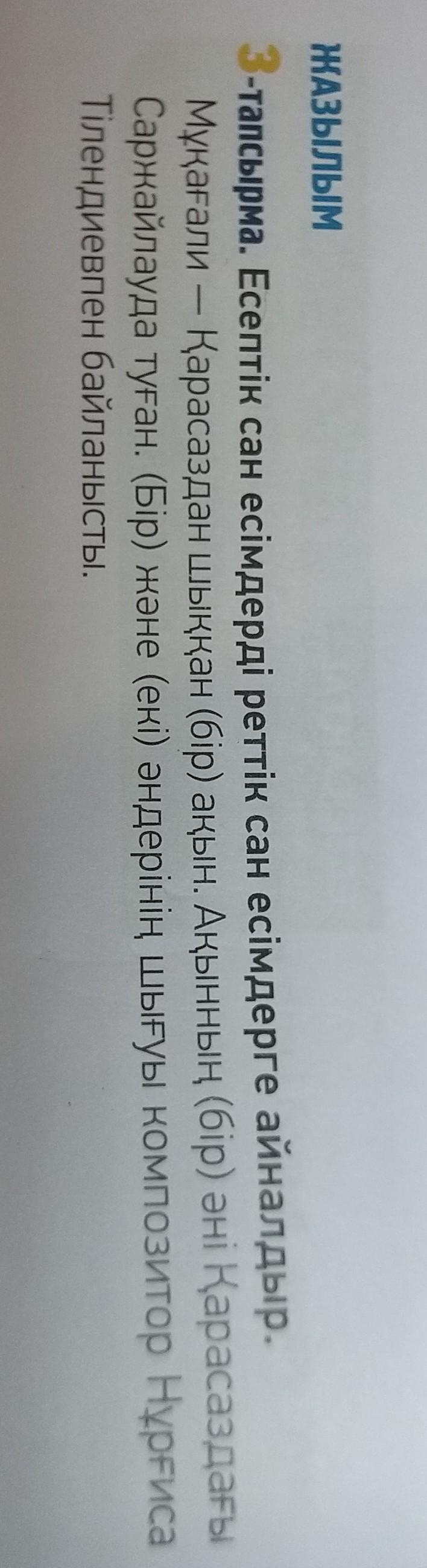 Есептік сан есімдерді реттік сан есәмдерге айналдыр помогитепожалуйста!!!спасибо!!!