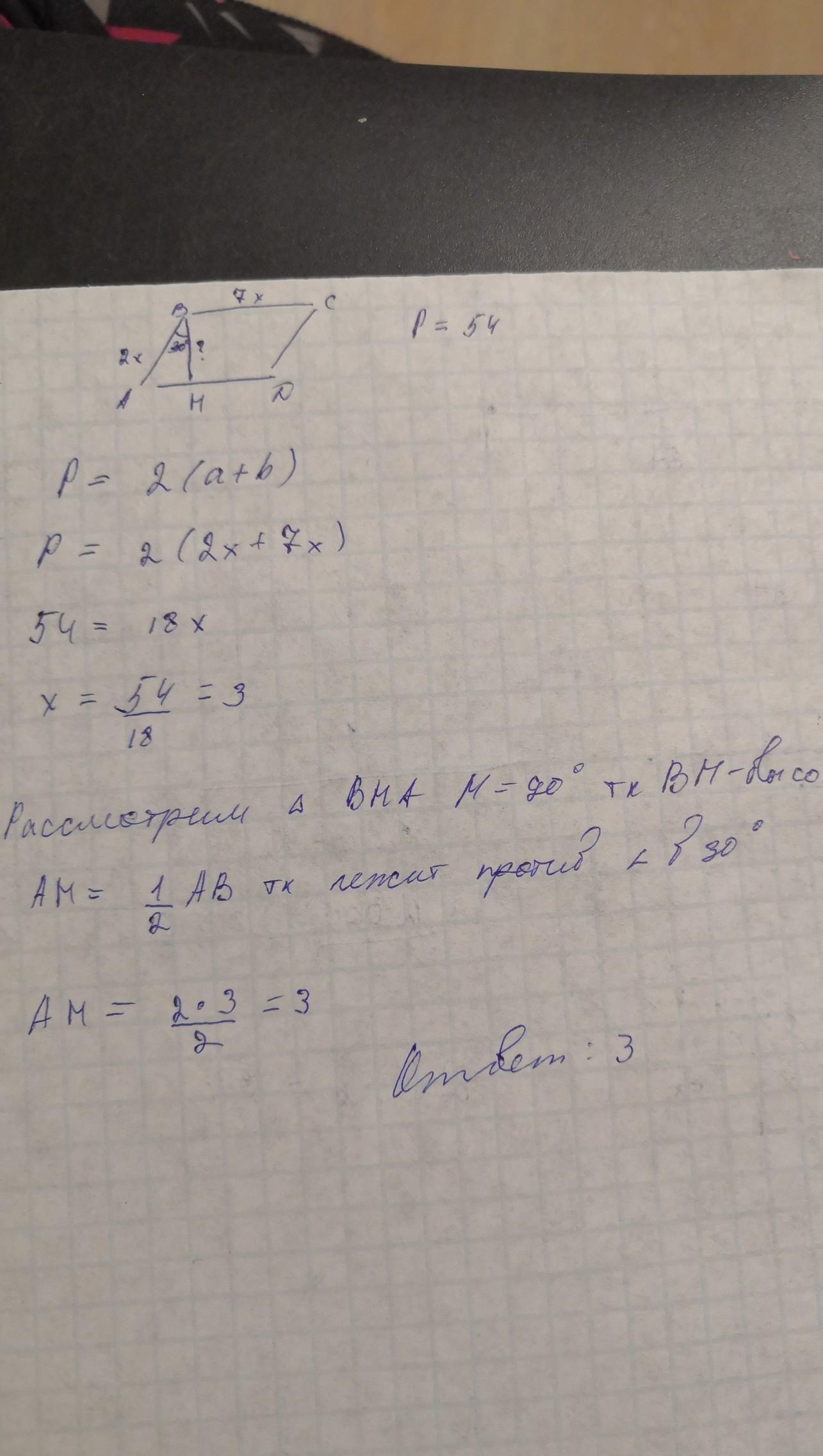 Острый угол образующаяся при проведении высоты = 30 градусам
