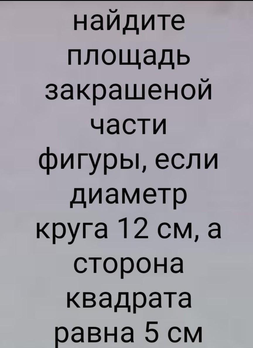 чтобы найти площадь закрашенной фигуры, надо от площади круга отнять площадь квадрата 113,04-25=88,04 см
