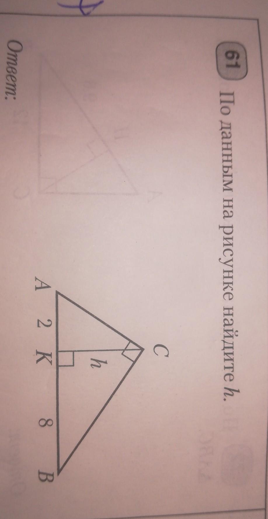 По свойству высоты в прямоугольном треугольнике h = корень ( AK * KB)