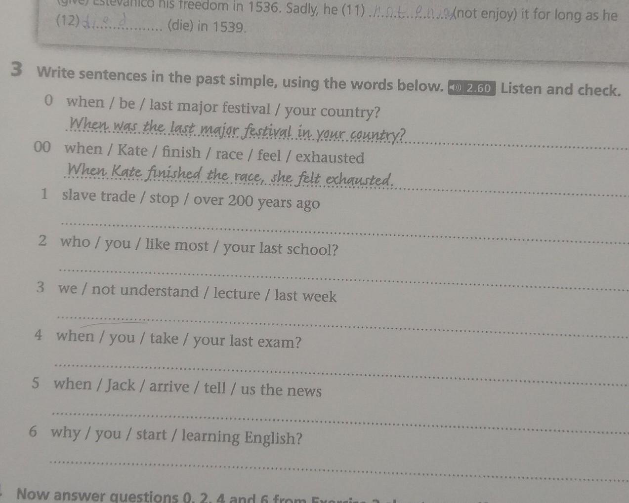 3 Напишите предложения в прошлом просто, используя слова ниже. 2.60 слушайте и проверяйте.
