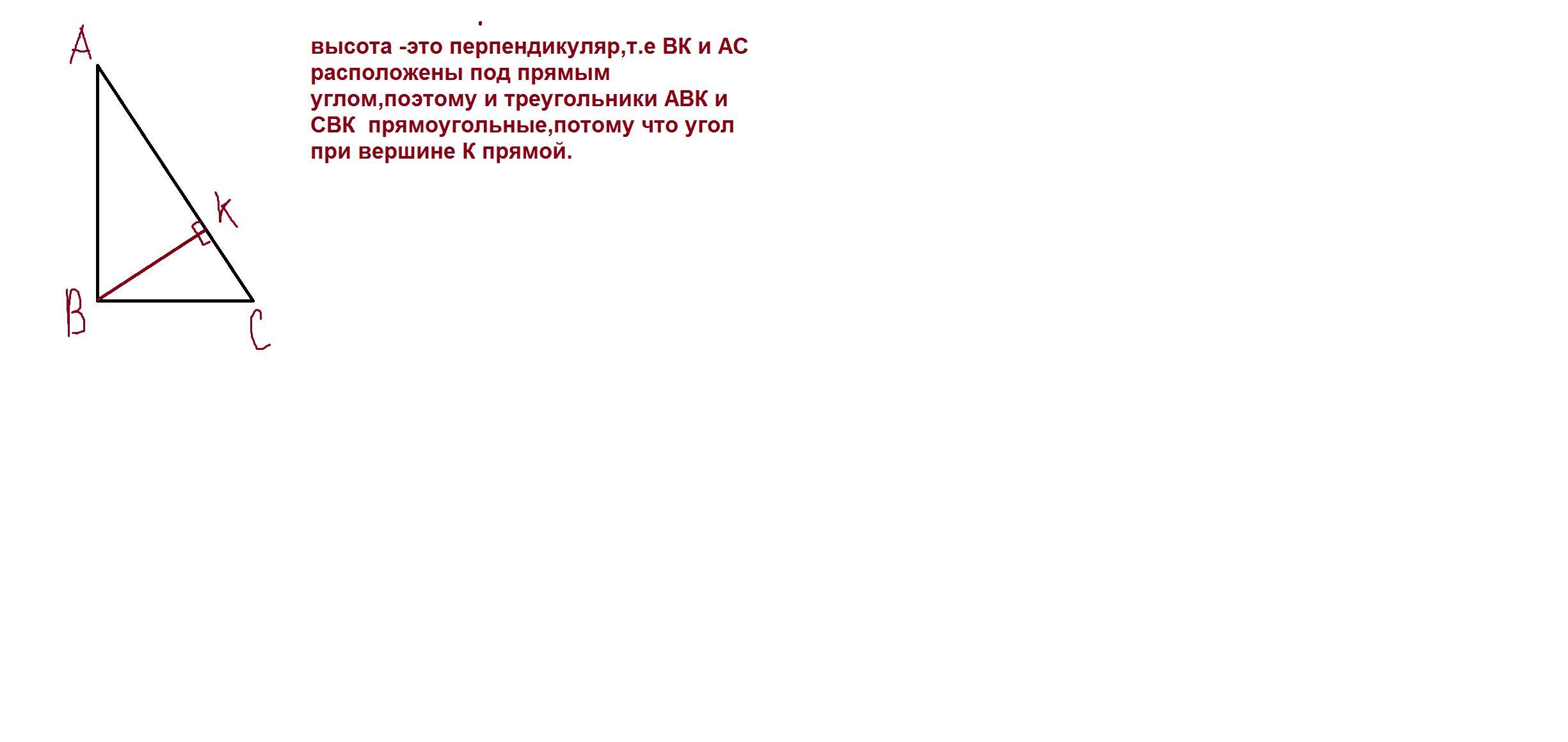 Начертите высоту BK из вершины прямого угла B прямоугольного треугольника ABC определите вид полученных треугольников ABK и CBK