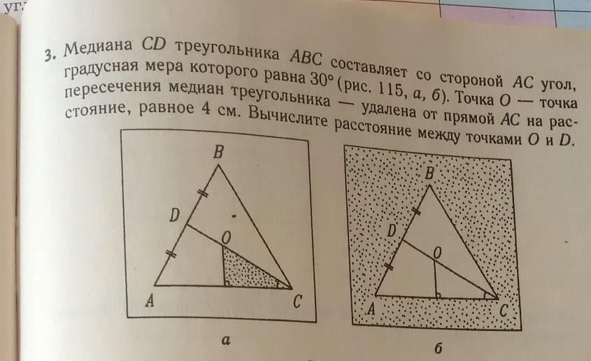 Медианы треугольника пересекаются в одной точке, которая делит каждую из них в отношении 2:1, считая от вершины. Значит, ОС/ОD =2/1