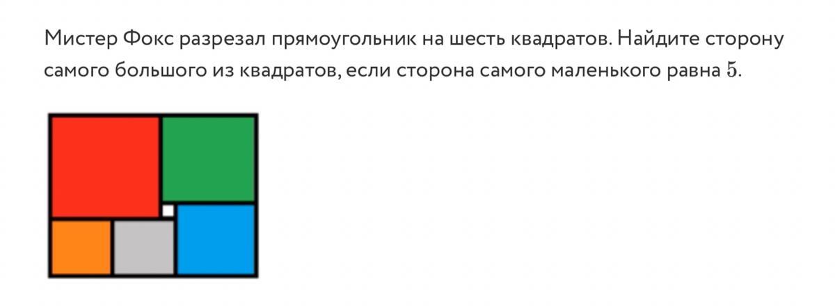 Тогда сторона желтого квадрата Х-5, а ширина прямоугольника Х+Х-5=2Х-5